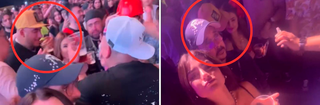 La pareja de Óscar Burgos balconeo a Alex Montiel durante un espectáculo de Peso Pluma.