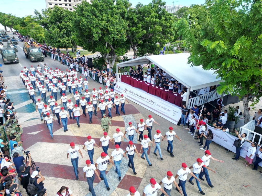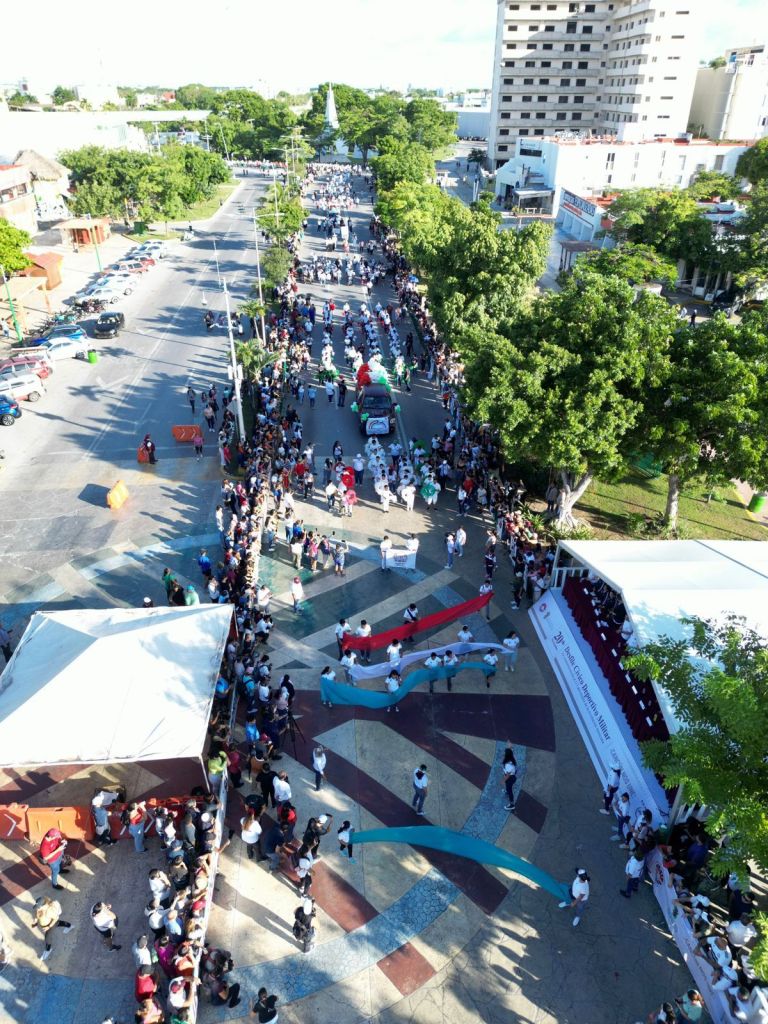 A las 8:00 horas el sonido de la banda de guerra del 64° Batallón de Infantería indicó el arranque del clásico desfile, encabezado por la Primera Autoridad Municipal, que en compañía de funcionarios públicos, se mezcló entre las y los ciudadanos para caminar sobre avenida Uxmal y Tulum hasta llegar al presídium frente al Palacio Municipal, donde se pudo observar con emoción la algarabía, rutina y alegría de niñas, niños, jóvenes y adultos que se sumaron en esta importante fecha.