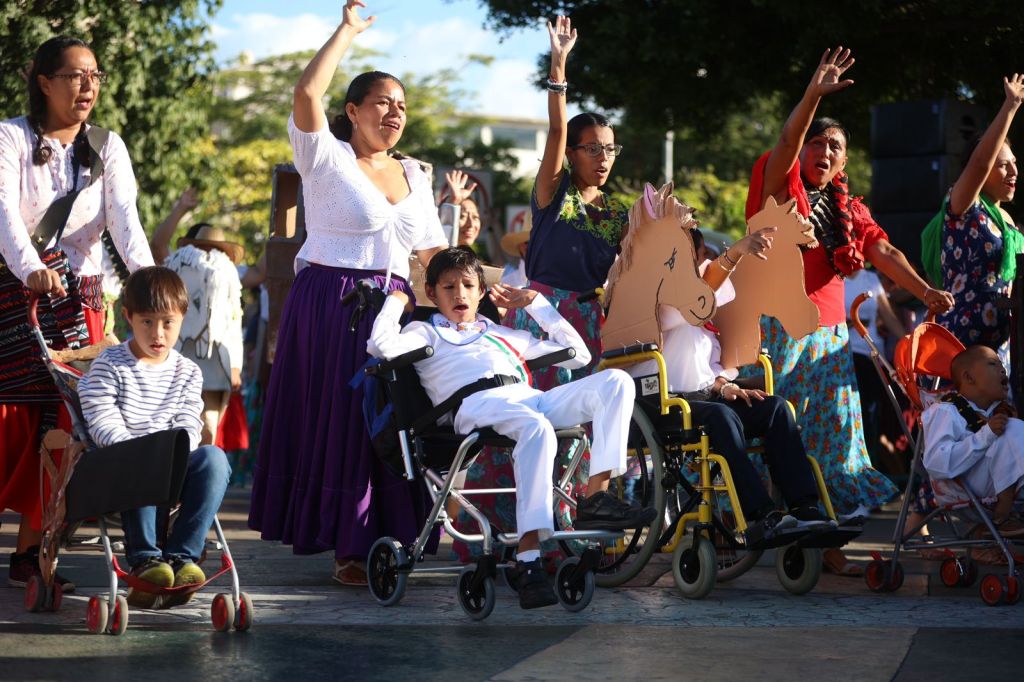 Durante el desfile, los contingentes del Centro de Atención Múltiple (CAM) y el Sistema para el Desarrollo Integral de la Familia (DIF) Benito Juárez, integrados por niñas y niños con discapacidad, iluminaron las avenidas de esperanza, ternura y regocijo, al mostrar sus logros con tablas rítmicas alusivas la festividad mexicana.