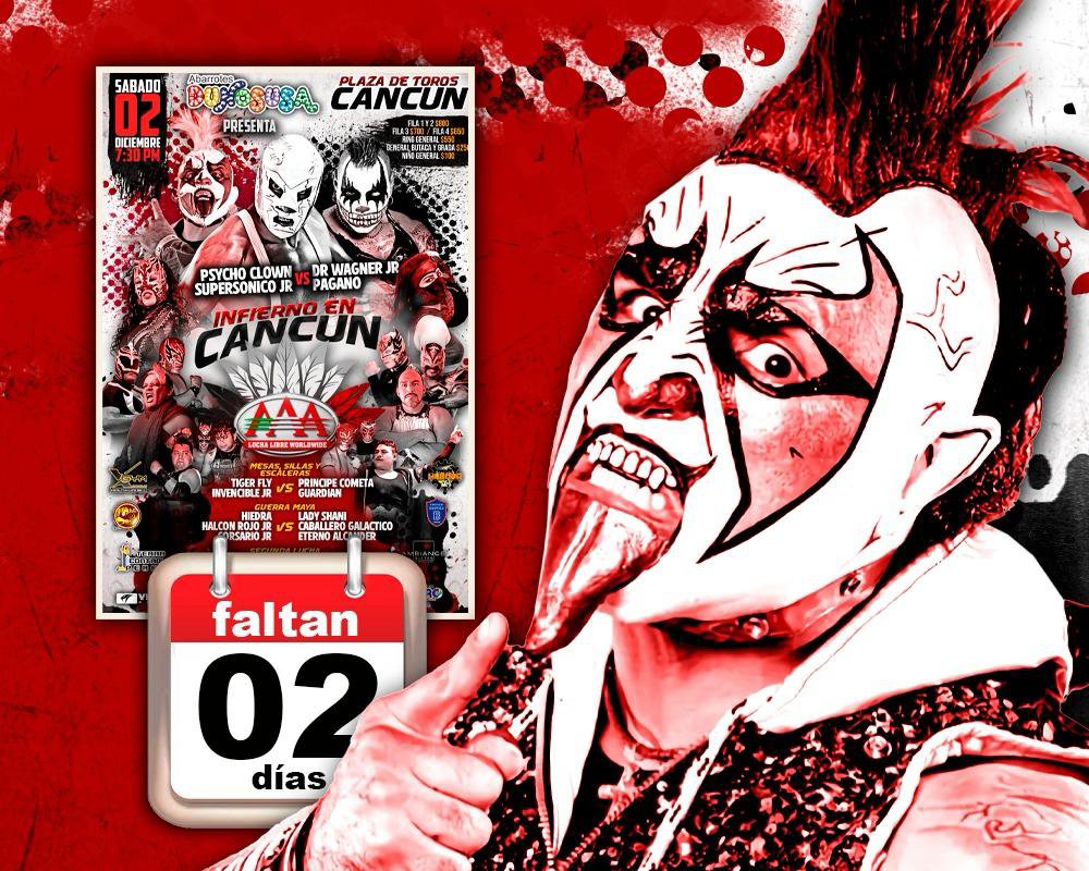 “Todo marcha según lo planeado, y este sábado 2 de diciembre, desde las 18:30 horas, en la Plaza de Toros de Cancún, se diputará la gala luchística ‘Infierno en Cancún’, que presenta en la batalla estelar la alianza que conformarán ‘Psycho Clown’ y ‘Super Sónico’ Jr. para hacer frente a la dupla ruda integrada por el ‘Dr. Wagner’ y ‘Pagano’, en contienda de pronóstico reservado”, dijo ayer el promotor George Villela en conferencia de prensa celebrada en el Plantel Tikal del Colegio Boston, donde estuvo acompañado de Enrique Ipiña, directivo de esa casa de estudios.