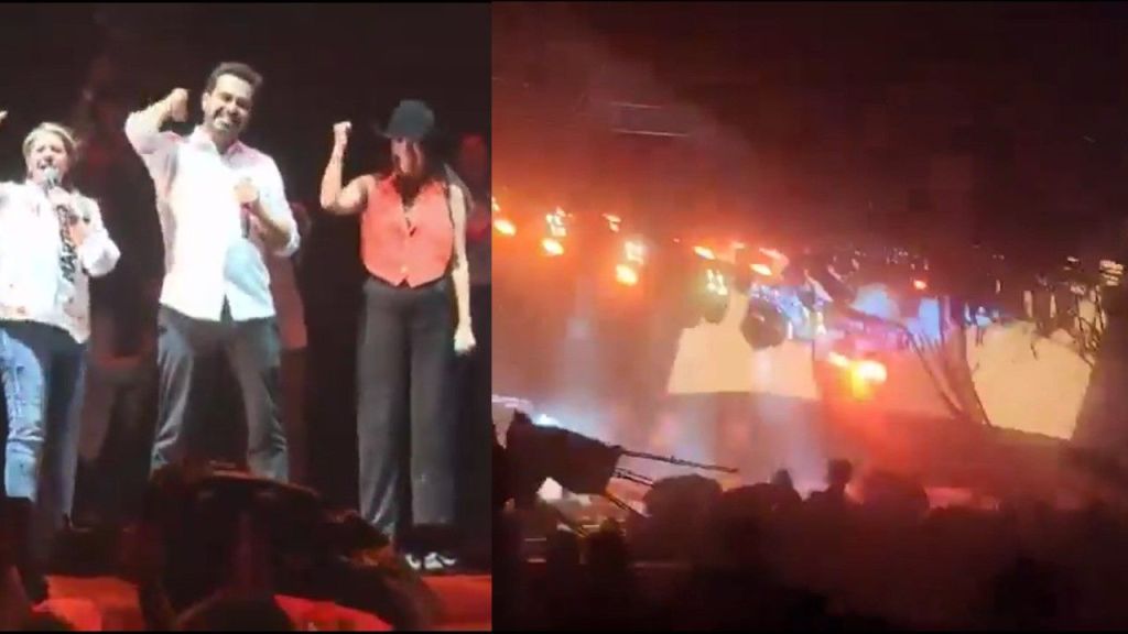 En las imágenes, se observa a Álvarez Máynez y Canavati corriendo mientras las torres y la pantalla principal del escenario se desplomaban.