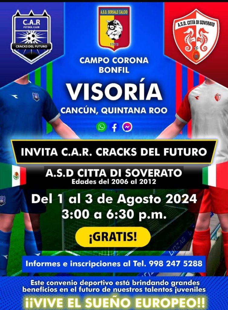 Esta visoria representa una gran oportunidad para que los jóvenes futbolistas de Cancún y puntos vecinos acudan para probar su talento bajo la supervisión de los buscadores de talento de la Red de Clubes Italianos en Cancún encabezados por el Club ASD Citta Di Soverato.