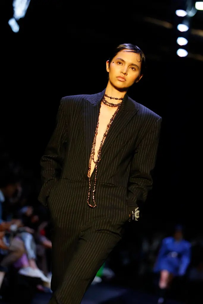 El guardarropa tiene una paleta de colores del negro al gris, así como amarillo, café, beige y rojo en piezas como ‘palazzos’, vestidos con transparencias, chaquetas tipo ‘bomber’, gabardinas, tops, faldas, blusas, kimonos y pantalones ‘oversize’.